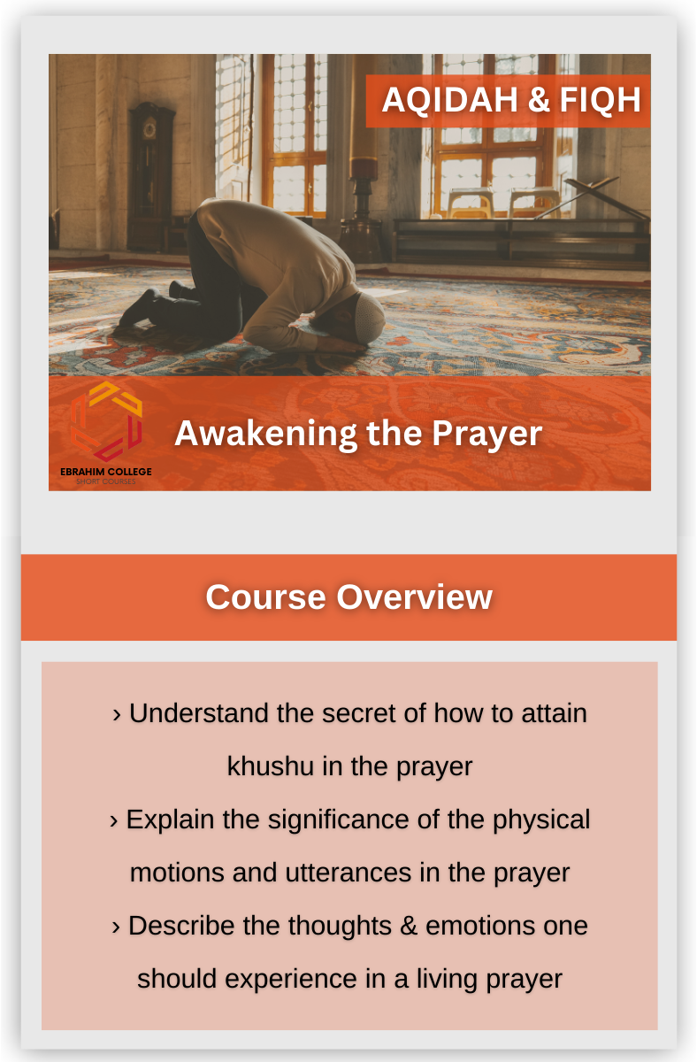 This short course will explore the many attributes of salah. It will help bring your Salah to life and aid you on your way to total devotion and concentration in your salah.