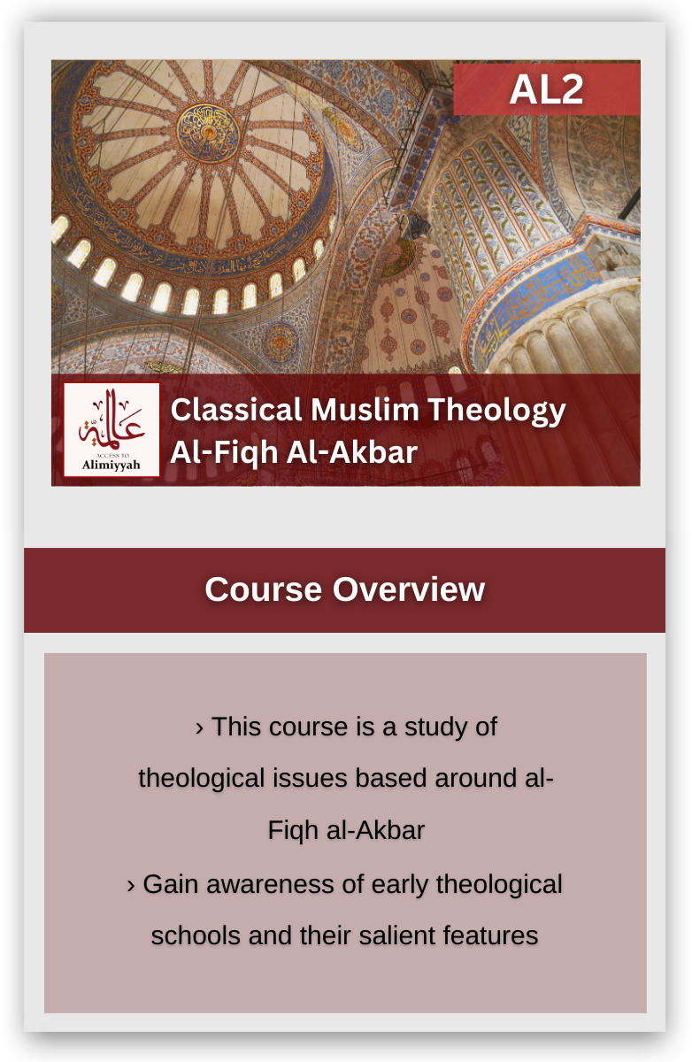 This course is a study of theological issues based around al-Fiqh al-Akbar.