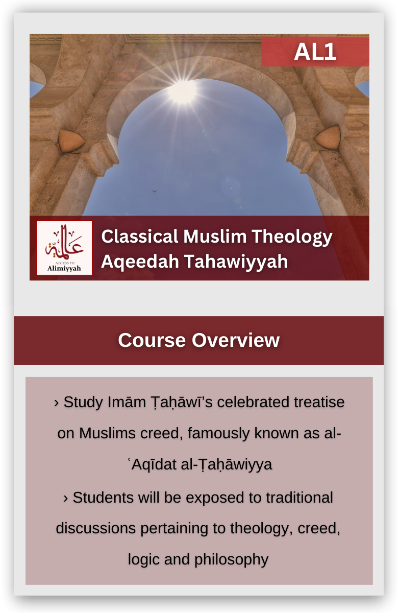 This course is a study of Imām Ṭaḥāwī’s celebrated treatise on Muslims creed, entitled ‘Bayān ʿAqīdat Ahl al-Sunna Wa al-Jamā’a’, famously known as al-ʿAqīdat al-Ṭaḥāwiyya.